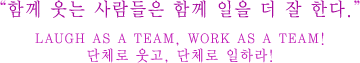 ¿ì¸®°¡ Èûµç ÀÏÀ» ¿ôÀ¸¸é¼ ÇÒ ¶§, ºÎ´ãÀÌ Àû´Ù. ¿ì¸®´Â Ç×»ó Áñ°ÌÁö´Â ¾ÊÁö¸¸, ¿ôÀ¸¸é¼ ÀÏÀ» ÇÏ´Â °ÍÀÌ ¿ôÁö ¾ÊÀ¸¸é¼ ÇÒ ¶§º¸´Ù ´õ¿í Áñ°Ì´Ù. ¿ôÀ½Àº ¸ðµÎ¿¡°Ô ÀÖ¾î ºÒ¾È°¨À» Å¿ö¹ö¸°´Ù. ¿ì¸®´Â ¿ôÀ¸¸é¼ µ¿½Ã¿¡ °ÆÁ¤ÇÒ ¼ö´Â ¾ø´Ù.